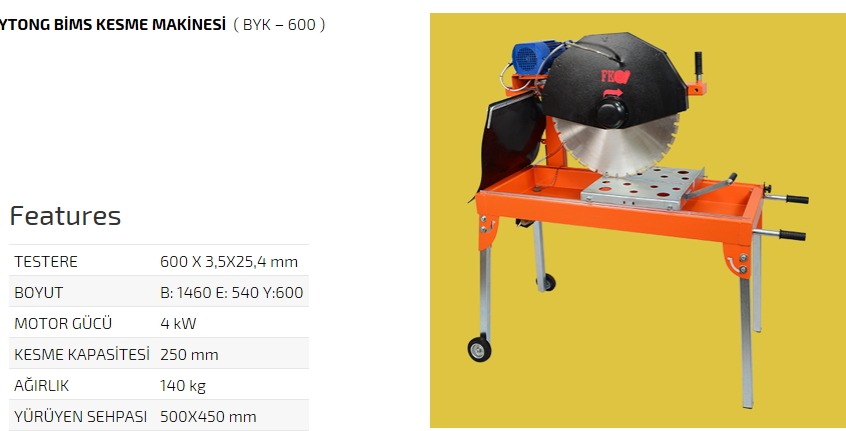 Ytong Bims Kesme Makinesi